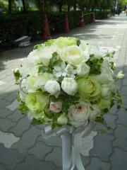※この商品は年中対応可能ですが、挙式日の二~三週間前ぐらいまでにご注文をお願いいたします。また夏場の白バラは少し頭小さめ&濃いめになる可能性がございますことをご了承ください。